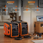 High Power Output:This generator delivers a maximum output of 4200 watts and a rated output of 3800 watts, powered by a reliable 192cc four-stroke ...